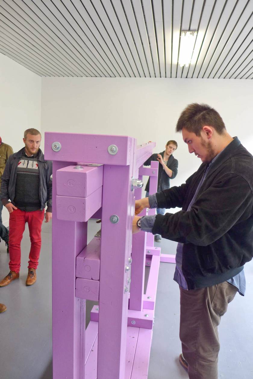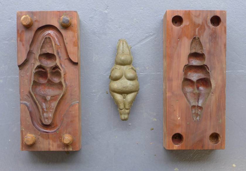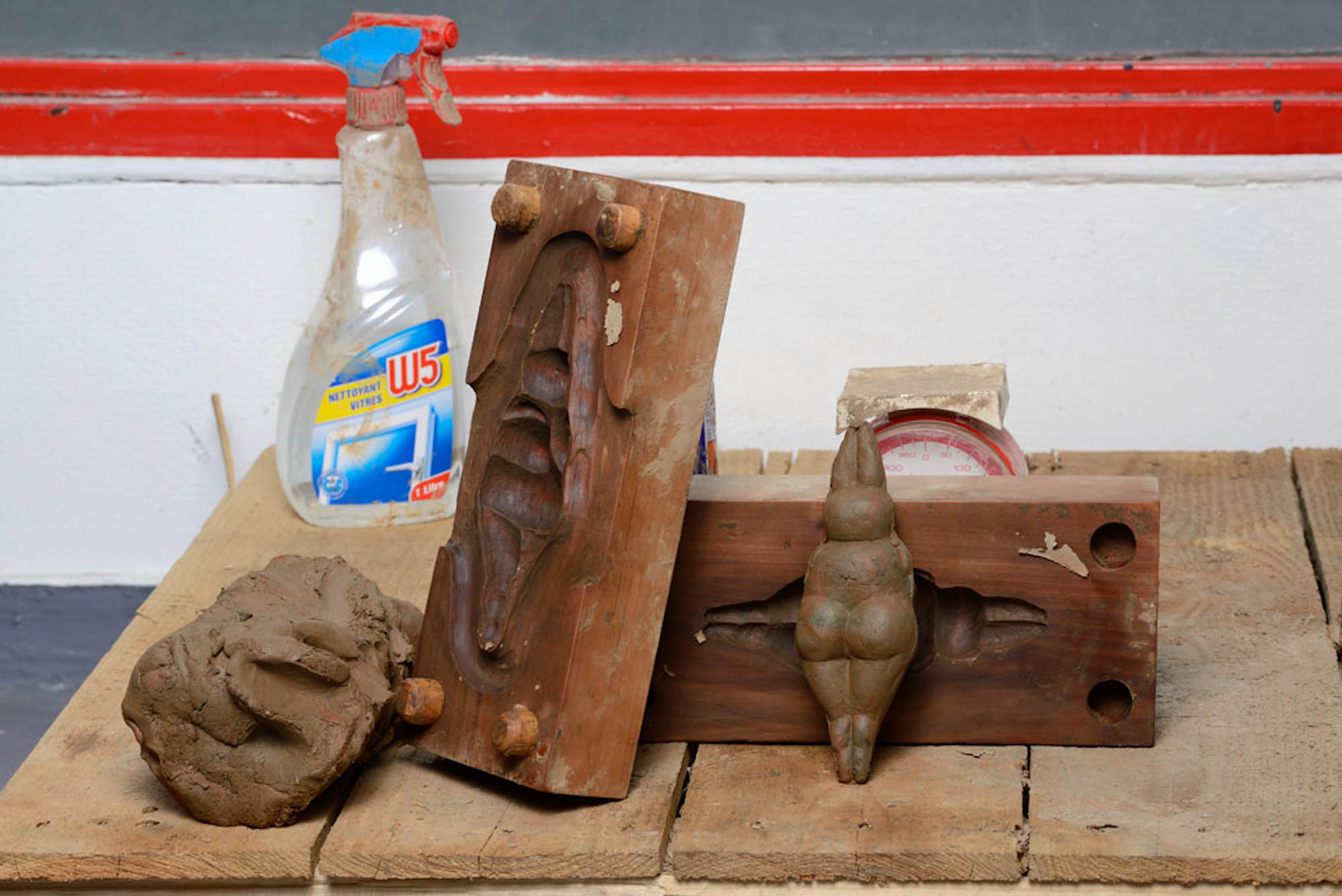 Invité à exposer à Toshiba House, espace indépendant à Besançon, Christian Gonzenbach propose de construire un outil archaïque : un appareil reproducteur. L’espace n’est occupé que par ce dispositif en forme de presse-ail. Ce système permet de produire des figures de Vénus-Lapine, adaptation de l’artiste des premières sculptures humaines connues. Chaque spectateur s’empare d’une poignée d’argile de carrière et presse sa propre statuette qu’il emporte. C’est le visiteur qui produit les sculptures qui disparaissent aussitôt, disséminées dans la ville.