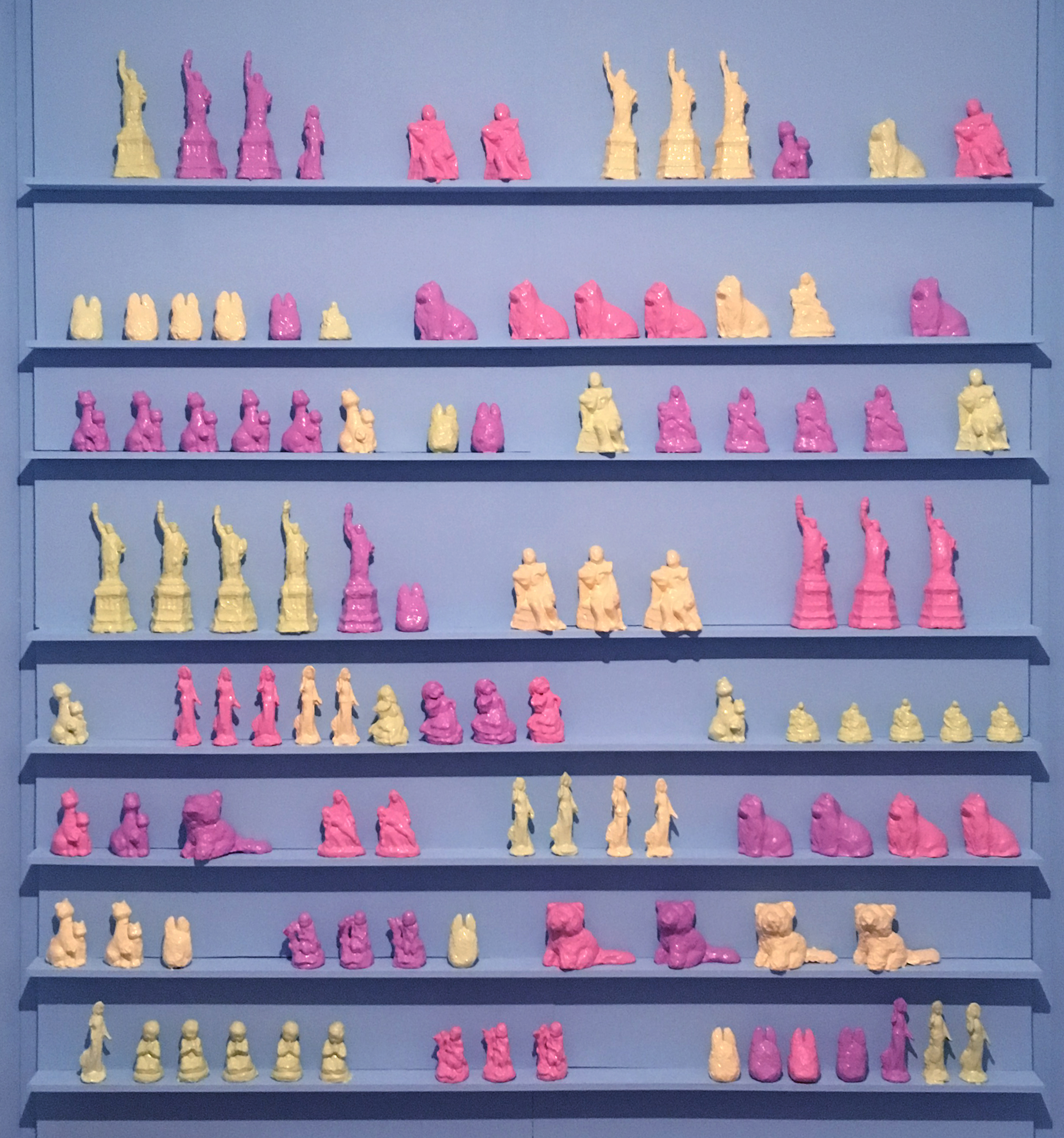 Avec l’outil placé au cœur du travail, l’acte de produire devient le vrai sujet, et en déléguant cet acte au visiteur, l’artiste s’affranchit de la paternité des œuvres. La fonction reproductrice de cette matrice permet ainsi la dissémination maximale des figurines, chacun partant avec son tirage.