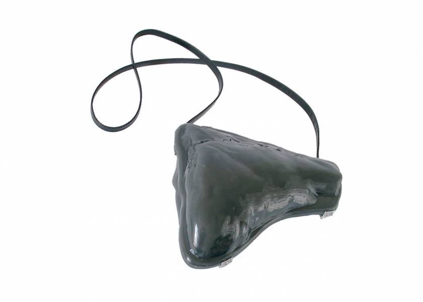 Des étuis noirs tapissés de velours rouge évoquent des étuis d’instruments de musique, mais reprennent la forme d’aliments et se portent sur l’épaule comme des sacs à main. Ces derniers ont été moulés sur de vrais poisson, poivron, gigot, poulet, sandwich, asperges, poulpe, chou et aubergine. L’aliment lui-même, reproduit à l’échelle 1/1, ne pourrait entrer dans cette boîte qui s’apparente pourtant également au bento japonais ou à une lunch box.