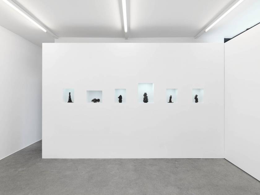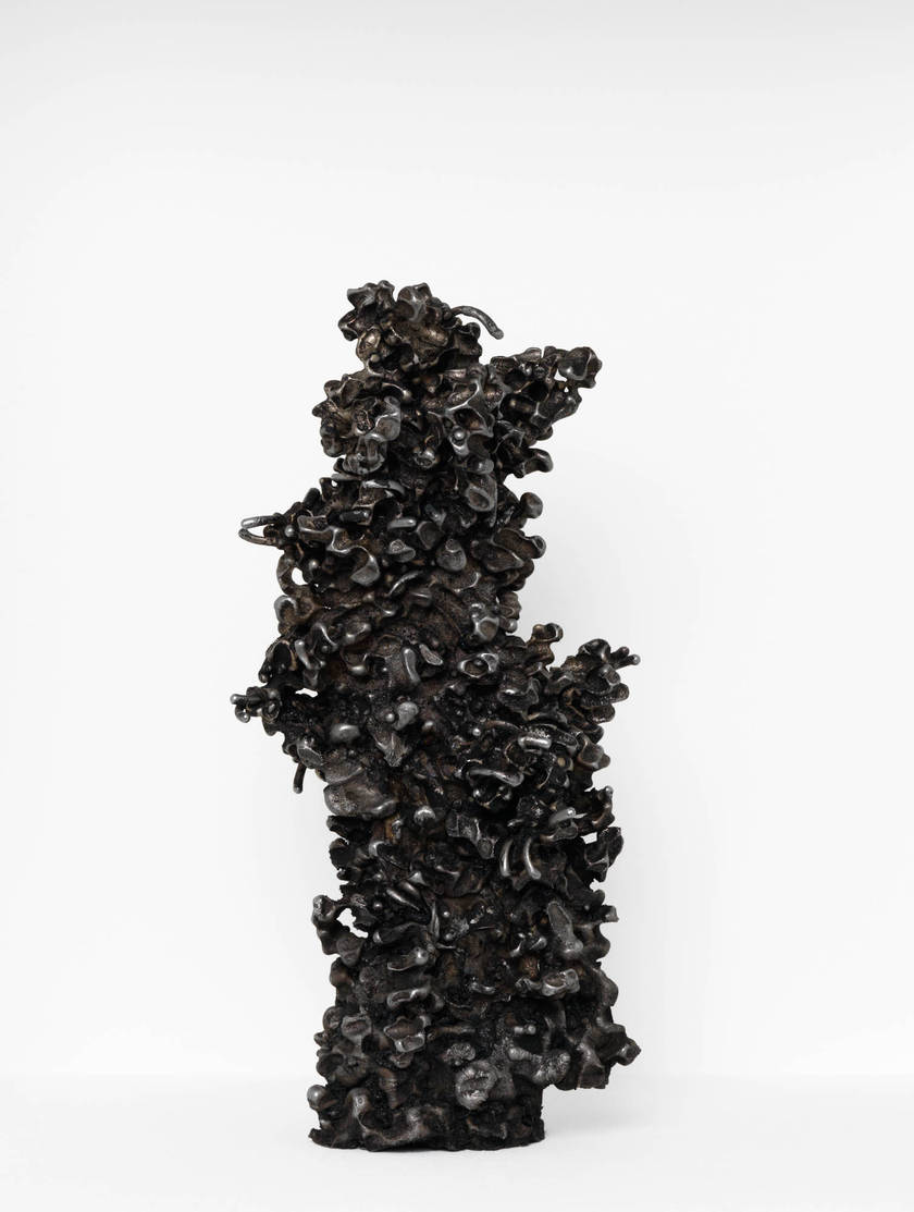 Dans un questionnement sur l’apparition des formes, Gonzenbach reproduit des phénomènes géologiques avec d’autres matériaux. Pour créer des stalagmites, il verse de l’aluminium en fusion dans des récipients remplis de pâtes en blé dur. Le métal liquide se fraie un chemin entre les pâtes, pour se solidifier un peu plus tard, créant une empreinte négative des pâtes. La forme exacte de la sauce tomate si on pouvait la visualiser entre les nouilles. Ces formes primitives d’aspect ressemblent à des statuettes du magdalénien.