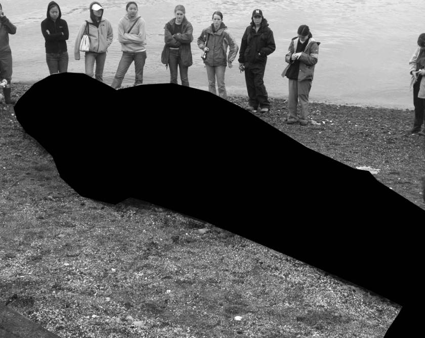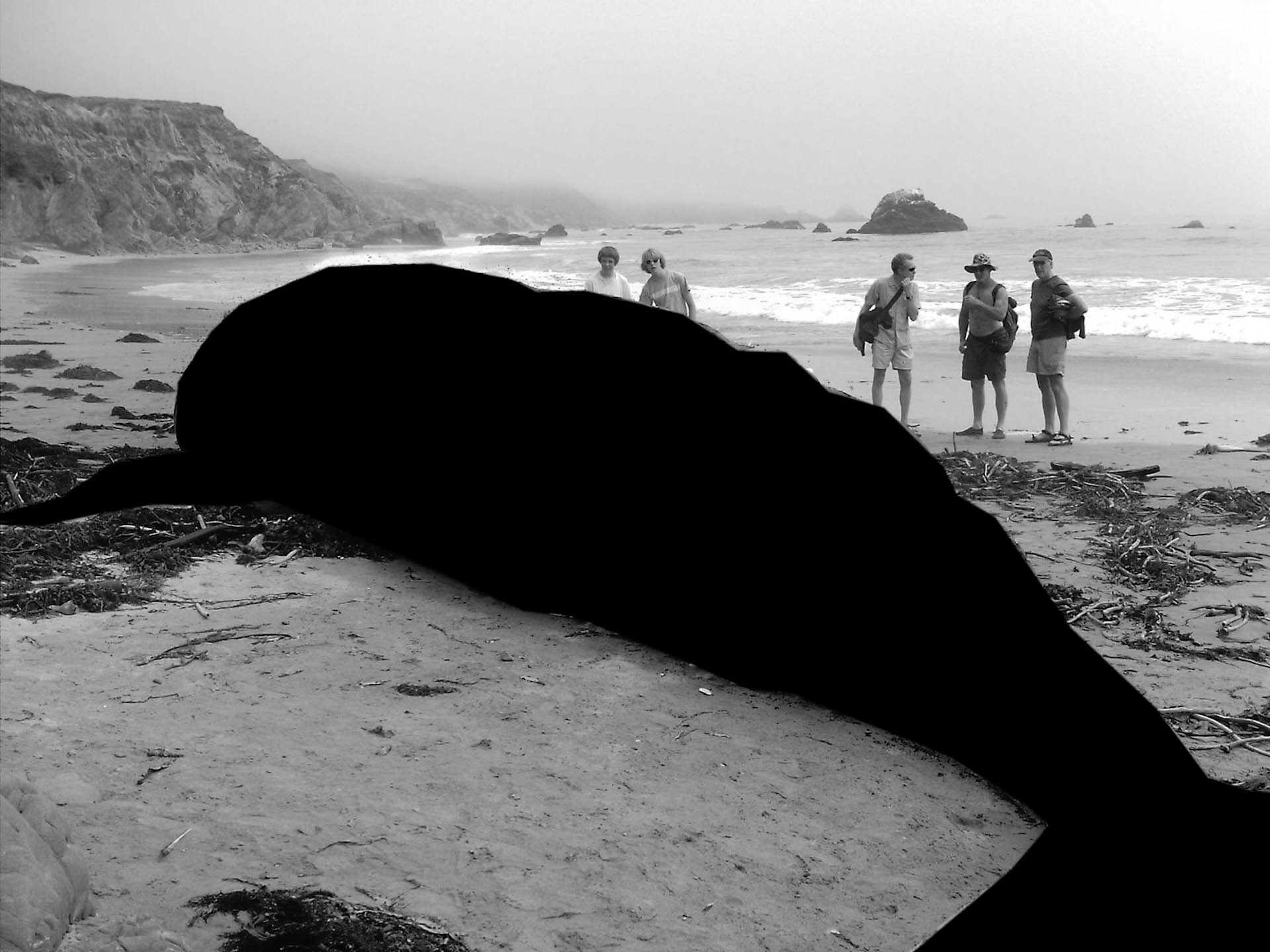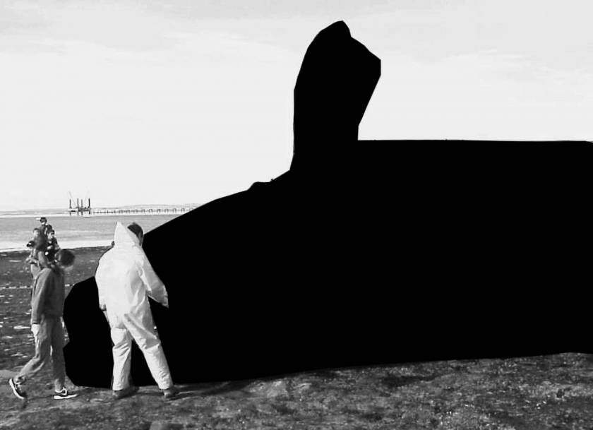 Dès que le corps massif du cétacé quitte son élément aquatique pour s’échouer sur une plage, l’animal meurt effondré sous son propre poids, à l’instar d’une étoile qui s’effondre sous l’intensité gravitationnel de son noyau, pour former un trou noir dont rien n’échappe, pas même la lumière. Avec la mort de l’animal, c’est tout un monde qui disparaît, un univers auquel nous n’aurons plus jamais accès et dont seul le contour reste visible.