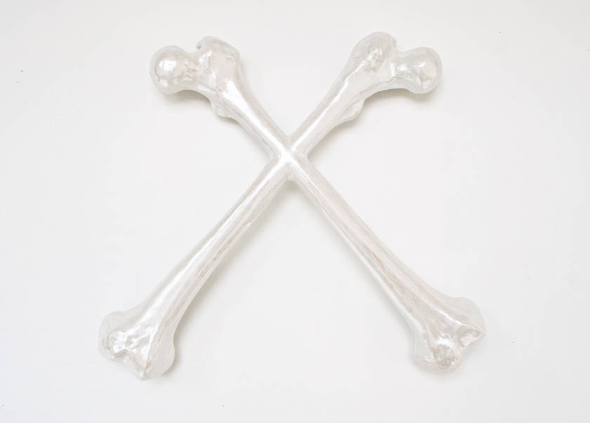 Deux os croisés, inséparables, soudés ensemble dessinent le signe le plus primitif qui soit, une croix. You are here fait référence à ces croix que l’on place sur une carte pour signifier notre présence. Une présence bien éphémère si l’on comprend ces fémurs humains comme une vanité.